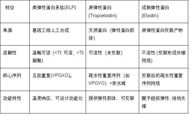 ELPs的设计灵感源于脊椎动物结缔组织中的弹性蛋白(Elastin),其可溶性前体为原弹性蛋白(tropoelastin)。人类、鸡、大鼠及牛的原弹性蛋白基因具有高度同源性,序列包含两大核心结构域:
